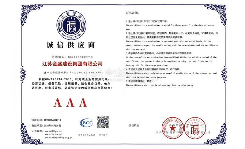 • 2007年江蘇省質量信得過安全穩定施工企業